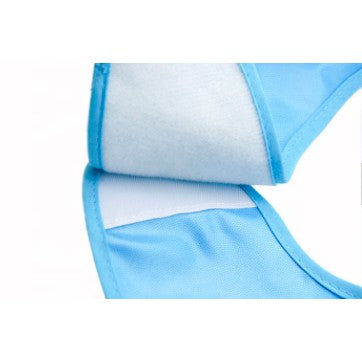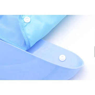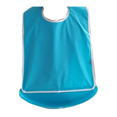 Mealtimes are made easier with these Reusable Adult Bibs with a Detachable Tray. The front pocket on the bib collects spills and messy food crumbs, while the adjustable collar velcro secures the bib in place, close to the user's neck.