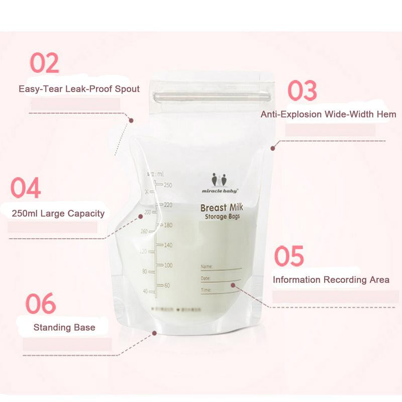 30 Pieces Breast Milk Storage Bags For Breastfeeding Self Standing Bag 250ml High Capacity Freezer Storage Container