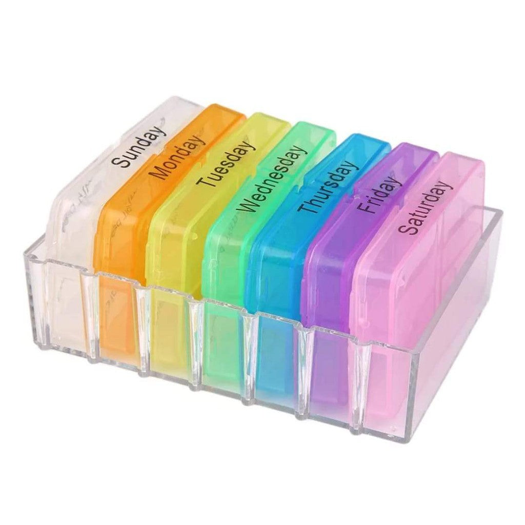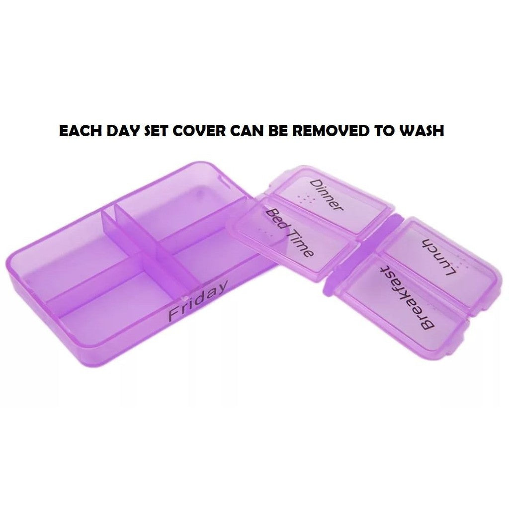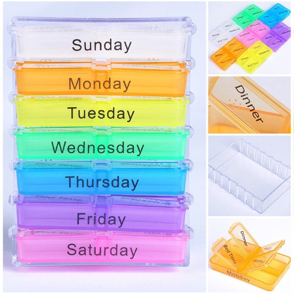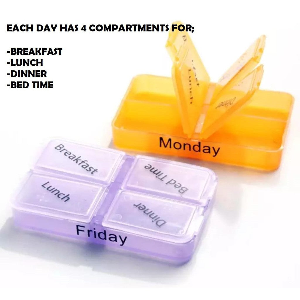 A simple yet handy pill organising tool to store one-week supplement or medication with 4 daily compartments.